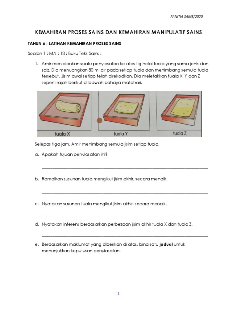 Ejercicio De Sains Tahun 6 Kemahiran Saintifik